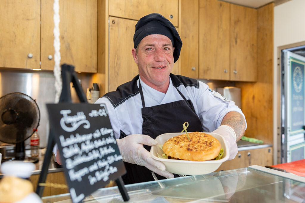 Nun weiss ich, was ich da immer wieder auf Social Media anpreise, und kann den Pastastand mit bestem Gewissen weiterempfehlen. Und vor allem auch den Quinoa-Burger, der eine gute Alternative zur Fleisch-Variante ist – und zwar nicht nur für Vegetarier. Neben dem Geschmack überzeugt auch der Preis. Dass der Black Angus Beef Burger teurer ist, hat aber auch seinen guten Grund: Es handelt sich dabei um qualitativ sehr hochwertiges Fleisch aus der Schweiz – das hat eben seinen Preis. Und: Black Angus ist auch etwas Besonders, das normalerweise nicht täglich auf der Speisekarte steht. Die Qualität scheint auf jeden Fall zu überzeugen, denn ich sehe viele Gäste, die den Fleisch-Burger bestellen – und nach dem Essen sehr zufrieden aussehen. Auch die Romanshörnli mit Poulet, Rahm, Apfel, Speck und Zwiebeln kommen gut an. Und für den kleinen Hunger gibt’s Ciabatta-Sandwiches oder eine Salatbox. Es ist für jede und jeden etwas dabei.