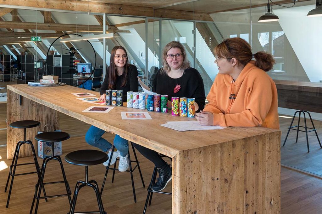 Mit der Entwicklung der Designs war das Projekt für die Lernenden folglich noch nicht abgeschlossen. Um die Entwürfe den Wählern schmackhaft zu machen, brauchte es eine attraktive Präsentation. Das Resultat der nächsten Kreativphase: die Dosenmotive in fünf Geschichten verpackt und als Kurzfilme für Facebook und Instagram aufbereitet. Das auf diesen beiden Plattformen stattfindende Voting hat die Unternehmenskommunikation auf allen zur Verfügung stehenden digitalen und analogen Brüggli-Kanälen kommunikativ begleitet, mit Visuals, die ebenfalls aus den Köpfen und Federn der Lernenden stammten.